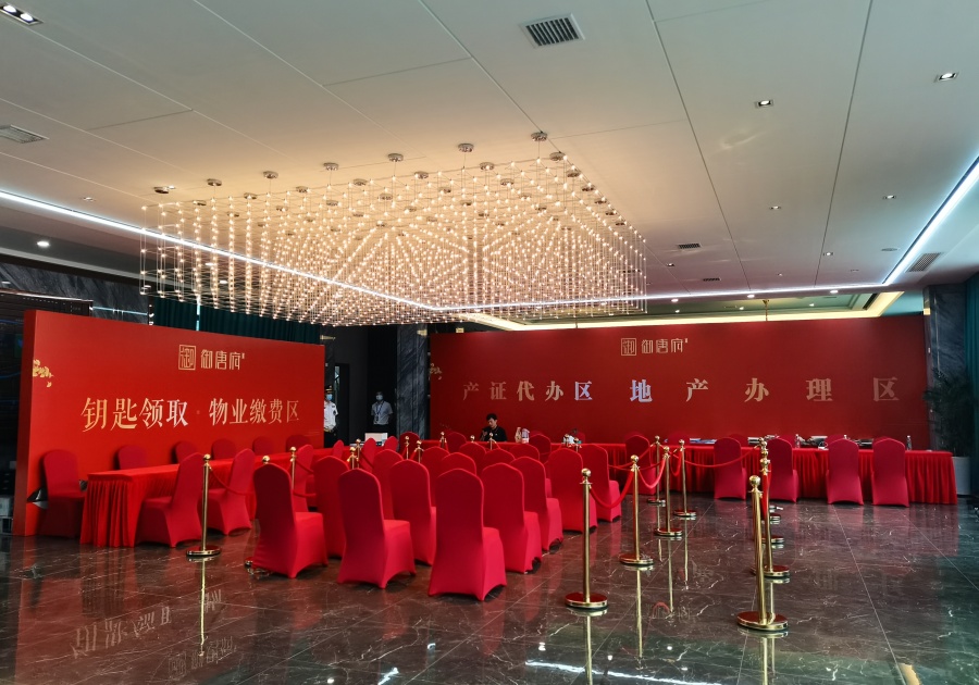 交房手續辦理區鋪設了紅地毯,