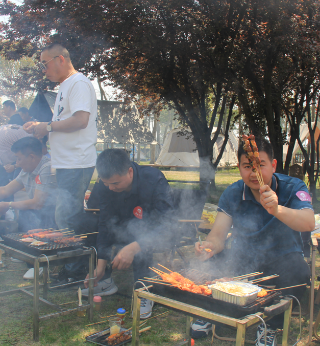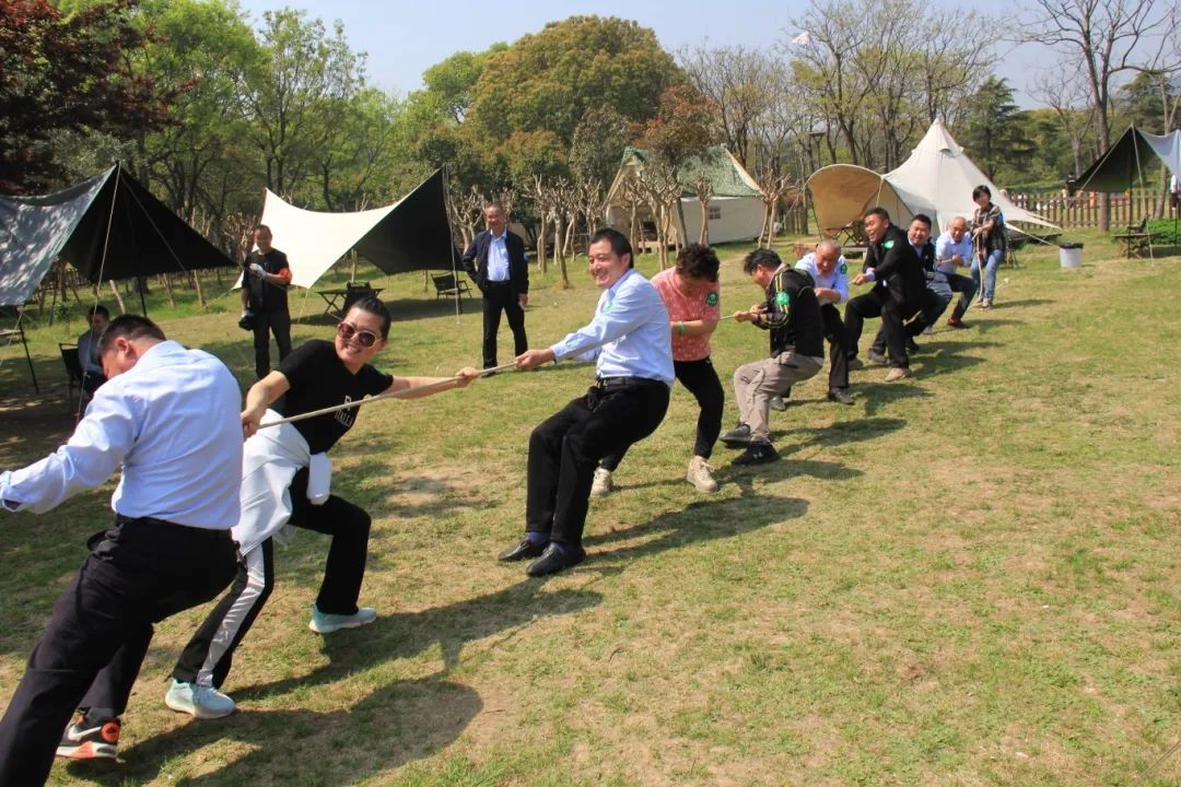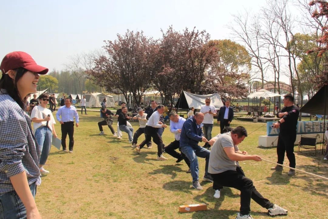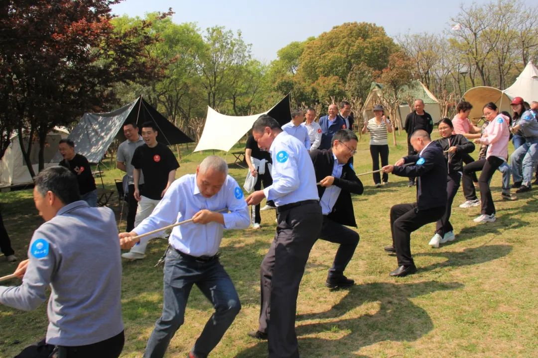 拓展競技環節,大家分為4個團隊開展,在考驗反應能力的搶水瓶突圍賽中,藍隊和紅隊以“預判對手節奏”戰術并列取勝,櫻花朵朵開環節,“十朵櫻花”團結合作贏得最后勝利。